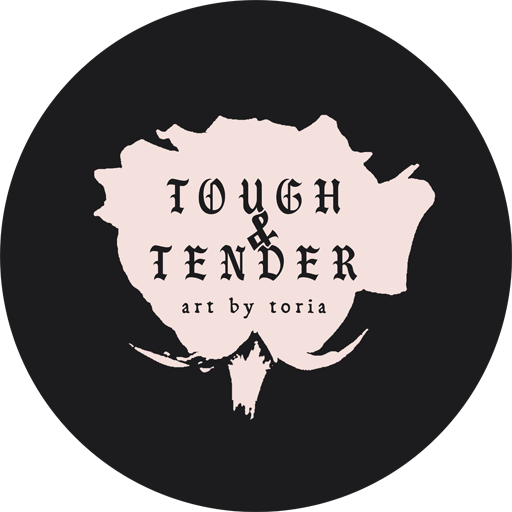 Tough & Tender logo printed with water-based ink on a black heavy cotton Gildan shirt